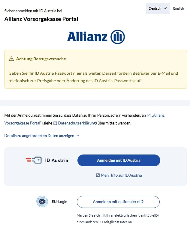 Gute Nachrichten: Seit dem 10. November 2025 ist die ID Austria in unserem Portal integriert!